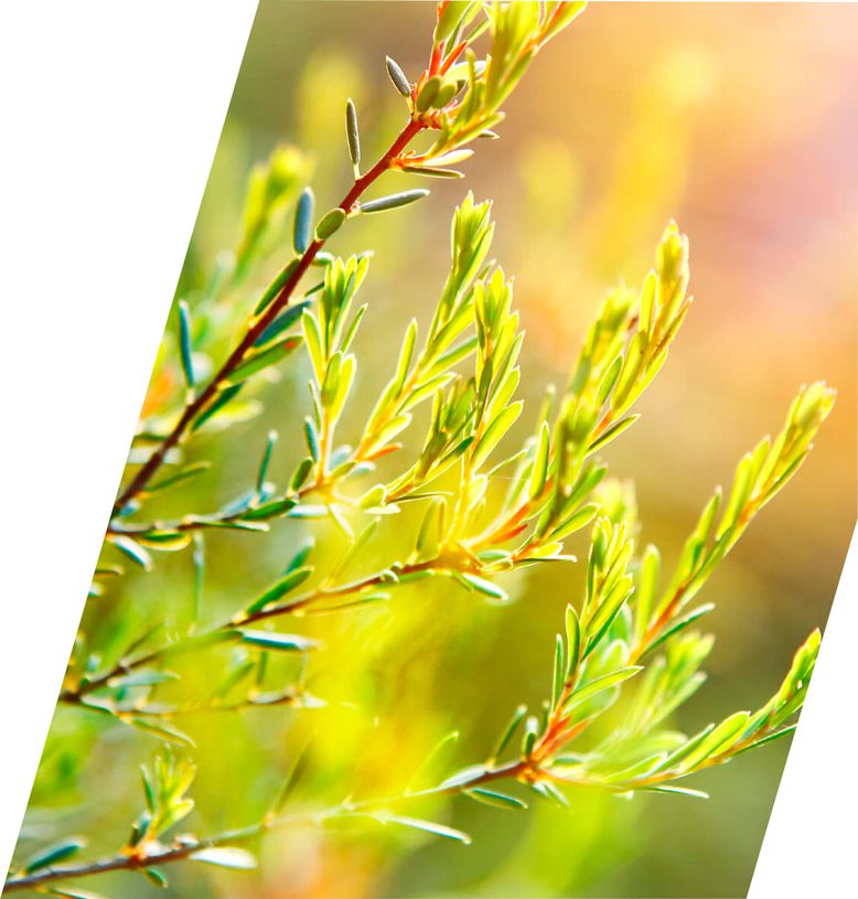 También conocido como árbol de té australiano. Originario de este lugar con más de 300 especies que crecen ahí de forma natural. Es un arbusto o pequeño árbol que alcanza los 5m de altura. Este aceite es conocido porque ayuda a mantener piel, uñas y cabello saludables. Es uno de los aceites más utilizados en el mundo. Fue publicado por primera vez por Proceedings of the Linnean Society of New South Wales