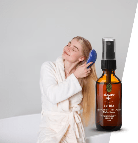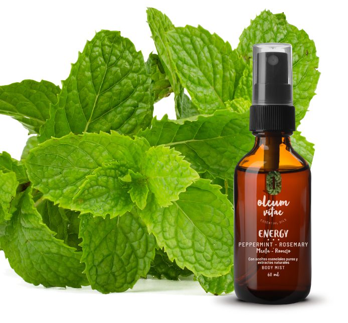 Los ingredientes del body mist Oleum Vitae te brindarán un ambiente de frescura gracias al aceite esencial de romero que combate la somnolencia debido a su efecto estimulante, el aceite esencial de menta que reduce olores de manera natural y la manzanilla que promueve el alivio del estrés y la ansiedad, entre otros.