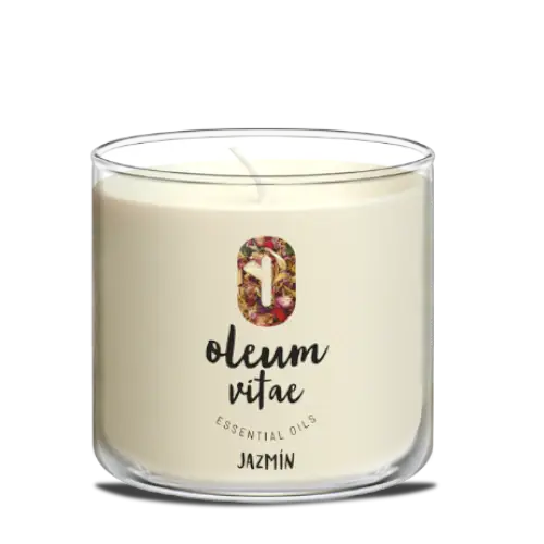 Los ingredientes de nuestra vela aromática jazmín Oleum Vitae te envolverán en un ambiente de tranquilidad gracias al aceite esencial de jazmín que promueve la relajación de la mano con la cera de soya.
